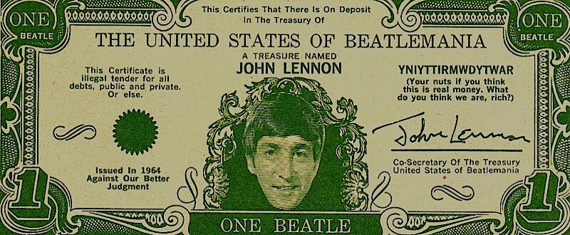 1964 VINTAGE BEATLES BEATLES MONEY JOHN LENNON NEAR MINT INCLUDES COA VINTAGE AUTHENTIC ORIGINAL EXTREMELY RARE!