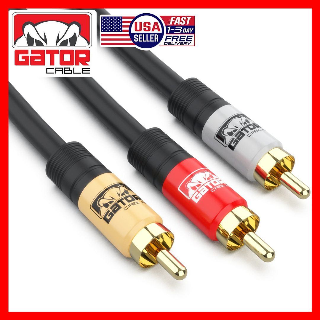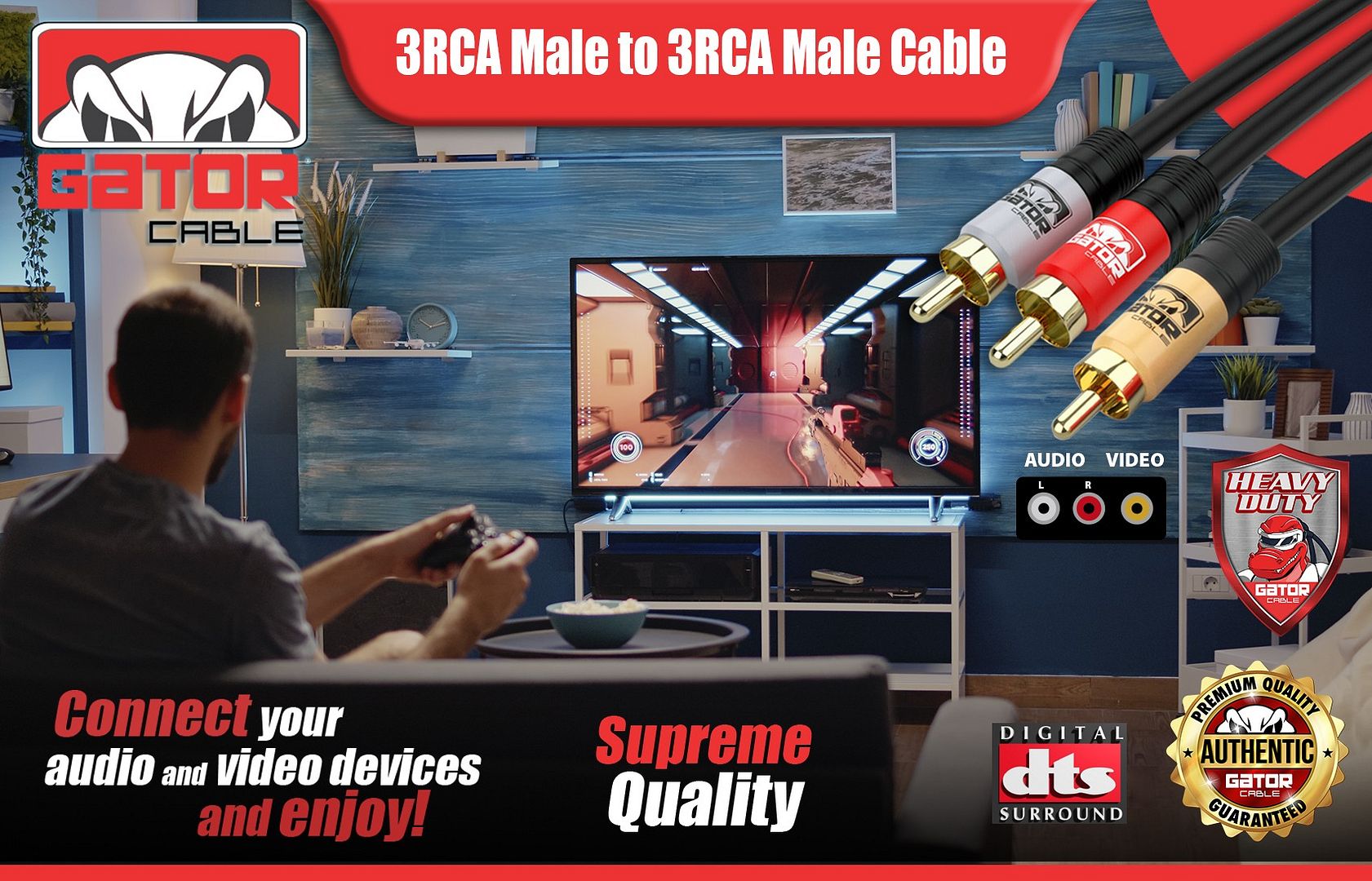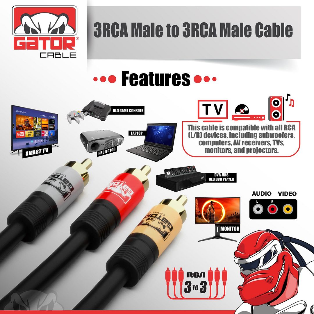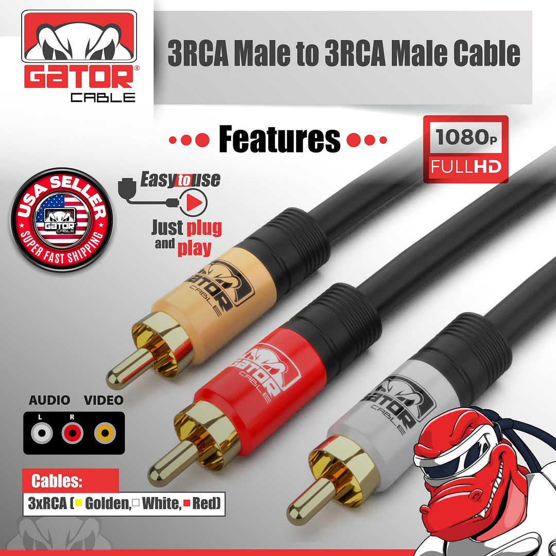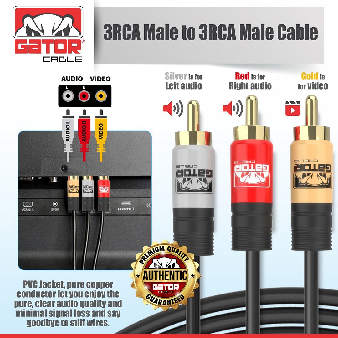Gator Cable3 RCA to 3 RCA Audio Video AV Stereo Cable 6FT Metal Casing-Shell Color: Silver/Red/Gold