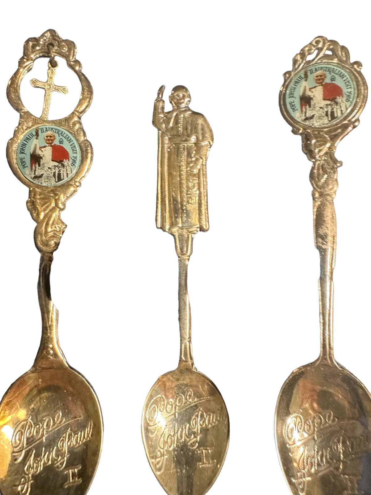 Pope John Paul 2nd Souvenir Spoon Set of 3 Rare Vintage