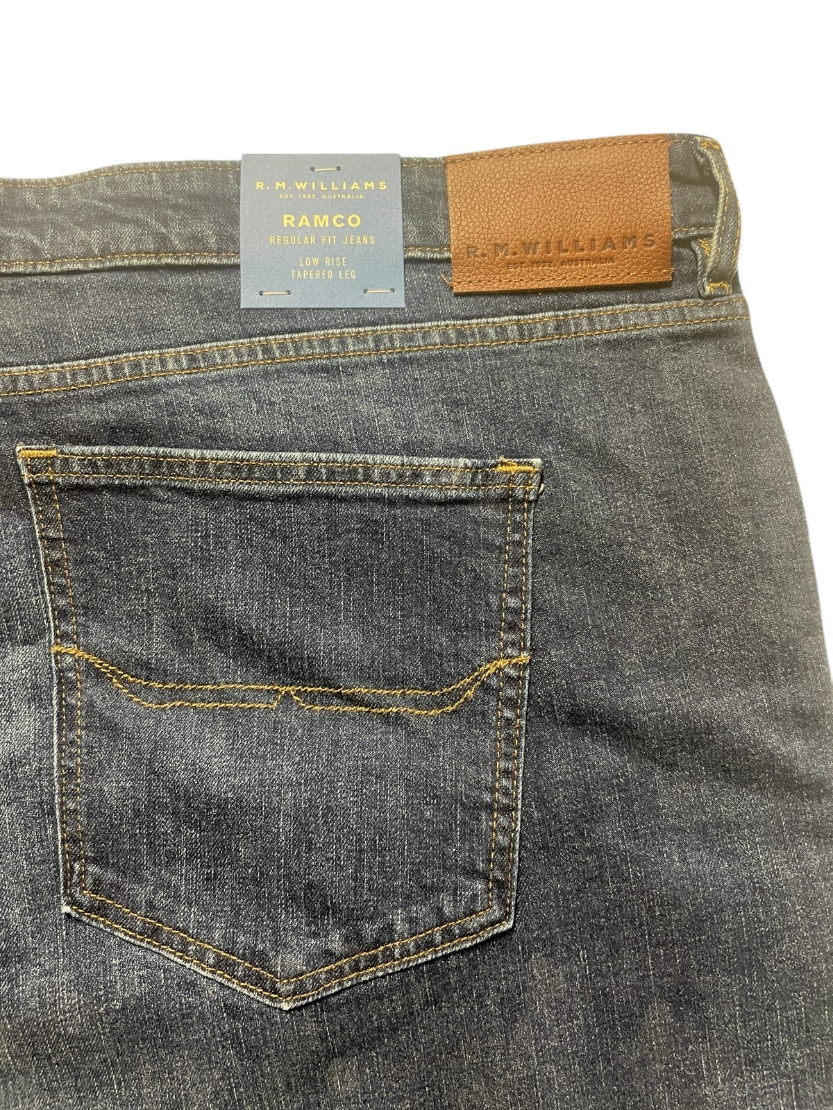 RM Williams Ramco Mens W52 L34 Regular Fit Tapered Jeans Blue Denim Low Rise NWT